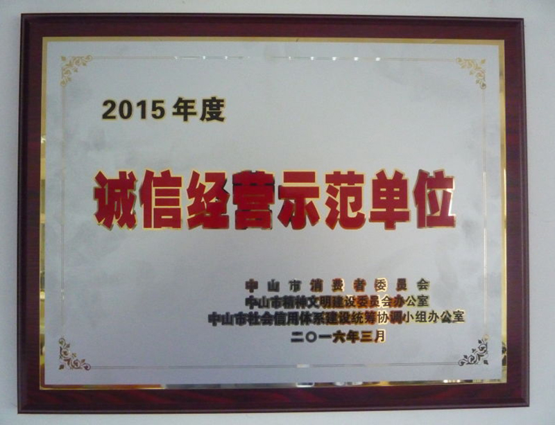 2015年誠信經(jīng)營(yíng)示范單位